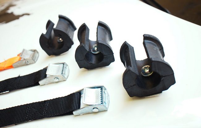 5. Покупая подушки стабилизатора, не забудьте в том же автомагазине купить крепежные ремни-стяжки. Для фиксации одного велосипеда потребуется 3 стяжки.