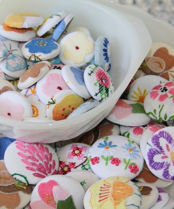 Ещё один вариант использования старого постельного белья – украшение им пуговиц. Это занятие действительно для тех, кто любит рукоделие, и готов потратить достаточно времени, чтобы превратить кусочки ткани в красивые аксессуары, которыми потом можно украсить платье или блузу.