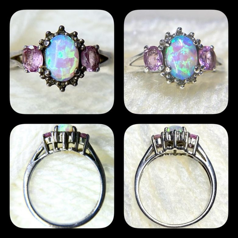 5. Старинное кольцо с опалом и розовыми сапфирами в оправе из стерлингового серебра. Куплено за 20 долларов и отреставрировано. Получился маленький шедевр.