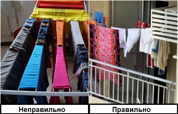 Плесени не нужно много времени для того, чтобы явить себя миру. Иногда хватает суток для того, чтобы она стала распространяться со скоростью света. Поэтому лучше перестраховаться и не оставлять влажную одежду на кровати или диване на весь день. В целом, сушка одежды в помещении никогда не дает хороших результатов – влага испаряется в воздух, из-за чего повышается влажность комнаты, и плесень начинает потихоньку размножаться. Идеальный вариант – сушить белье на улице, но если такой возможности нет, хотя бы чаще проветривайте комнаты, особенно после стирки.