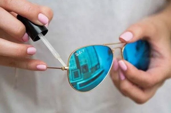 Если часто выпадает болтик на ушках очков, то покройте его сверху небольшим количеством лака.