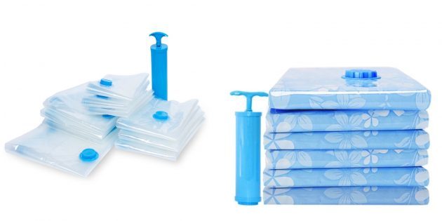 Вакуумные пакеты, короба и другие вещи для экономии места в гардеробе.