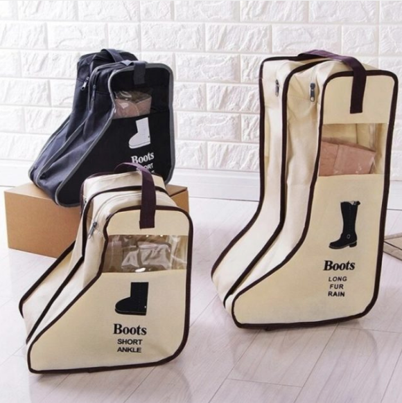 Отдельный чехол для каждой пары — оптимальный способ хранения обуви. Можно найти варианты подходящего размера и для высоких сапог, и для ботинок. Не забудьте положить внутрь пакетик с осушителем для удаления влаги, а если обувь меховая — средство от моли.