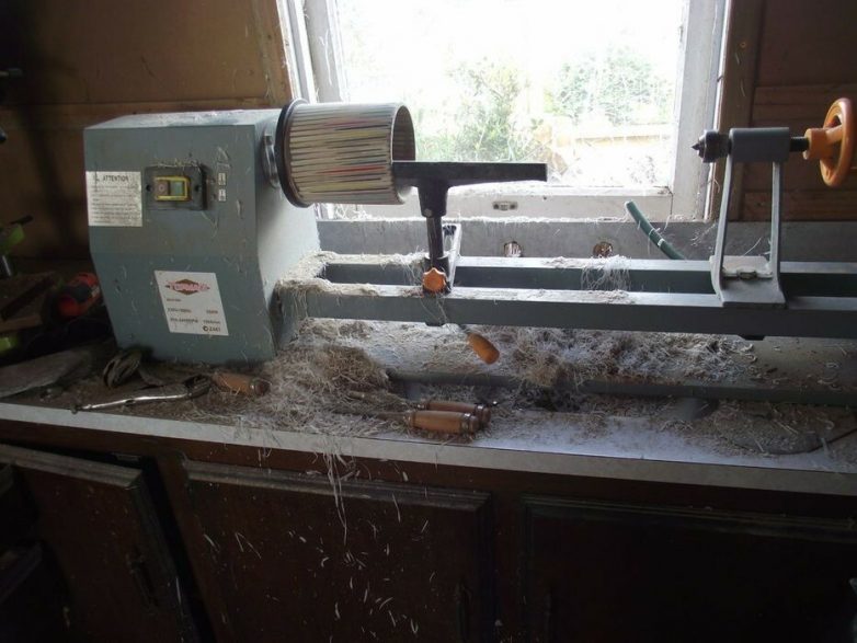 После высыхания закрепляем заготовку в токарный станок и стачиваем внешний слой эпоксидки и половину наружного слоя карандашей до появления грифеля.