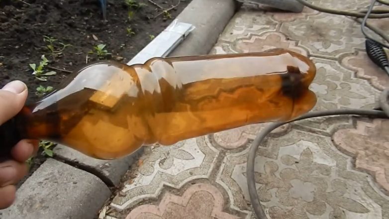 Аналогично предыдущему равномерно прогреваем бутылку строительным феном.