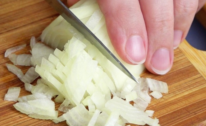 Благодаря простому приему в процессе нарезания луковица не развалится, как это обычно бывает. Сперва разрежьте продукт вдоль, а дальше — поперек. Профессиональные повара легко справляются, а вот любителям на первых порах бывает непросто. Выход есть — переверните лук и режьте его поперек, чтобы лепестки не отставали друг от друга. Затем еще раз переверните овощ и нарезайте перпендикулярно.