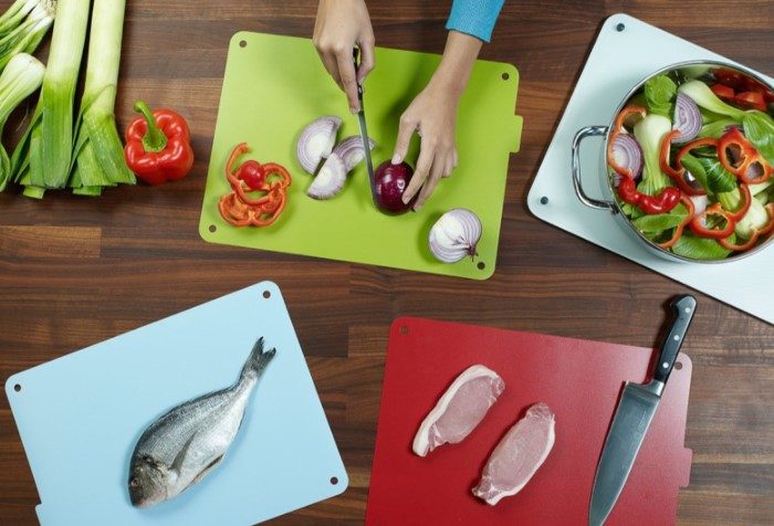 Профессиональные повара используют отдельные доски для разных продуктов: мяса, рыбы, овощей, хлеба, сладких блюд. Чтобы не перепутать, изделия можно пометить разными цветами. Почему так? В микропорезы на досках попадают микробы, которые переходят к разным продуктам. Например, нельзя резать сырое, а затем приготовленное мясо на одной доске, чтобы предотвратить заражение. После каждого использования изделие нужно вымывать с мылом и горячей водой. Кстати, во время приготовления обязательно снимайте украшения. В них застревают частички пищи, которые могут испортить кольца и браслеты.