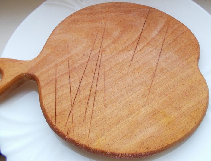Что касается старых разделочных досок, то с ними ситуация обстоит еще хуже. От деревянных экземпляров могут начать отлетать щепки после длительного использования, а если они попадут в пищу будет не очень приятно. Также они становятся домом для различных бактерий, как и вышеупомянутые деревянные ложки и лопатки, и нет никакой гарантии, что эти микроорганизмы не окажутся в тарелке с вашим салатом. Впрочем, пластиковые доски ненамного безопаснее: со временем они тоже покрываются царапинами и даже горячая вода не гарантирует их полную стерильность.