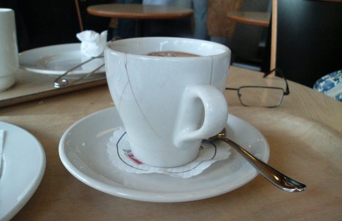 Здесь все и так понятно. Первый минус – внешний вид, второй – отсутствие элементарной безопасности. Из такой посуды, конечно, можно есть, если скол незначительный, однако где гарантия, что вы не порежетесь или, что тарелка не лопнет прямо в ваших руках? К тому же, вы не сможете поставить ее на праздничный стол, да и философия фэншуй запрещает держать треснутую посуду на кухне.
