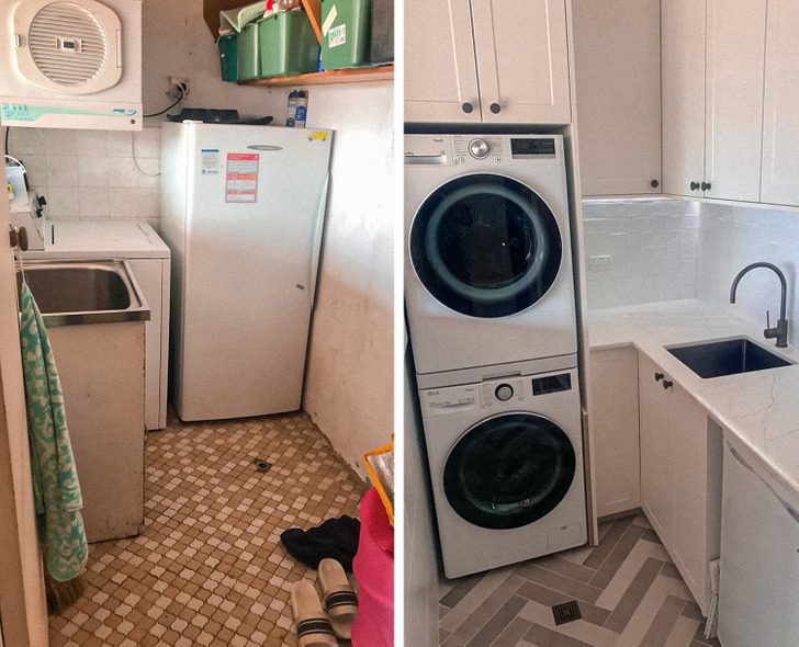 «Переделал ужасную мамину прачечную из 1960-х. Было сложно разместить все на таком маленьком пространстве, но я доволен результатом»