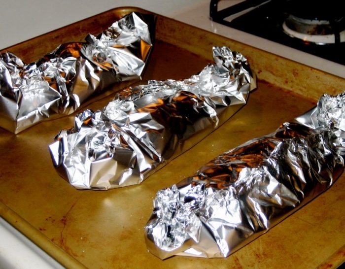Большинство хозяек скажет в один голос, что использовать фольгу нужно зеркальной стороной к противню. Если же речь идет о завертывании в фольгу еды, то отражающая сторона должна быть к мясу или рыбе (внутрь). Хотя большинство хозяев научных трудов не читало, на уровне чистой эмпирики они рассуждают правильно. Зеркальная сторона по данным научных тестов отражает до 88% энергии, в то время как матовая сторона отражает не более 80%. Еще один важный фактор – это прилипание. Гладкая поверхность липнет с меньшей вероятностью, что тоже весьма полезно в хозяйстве.