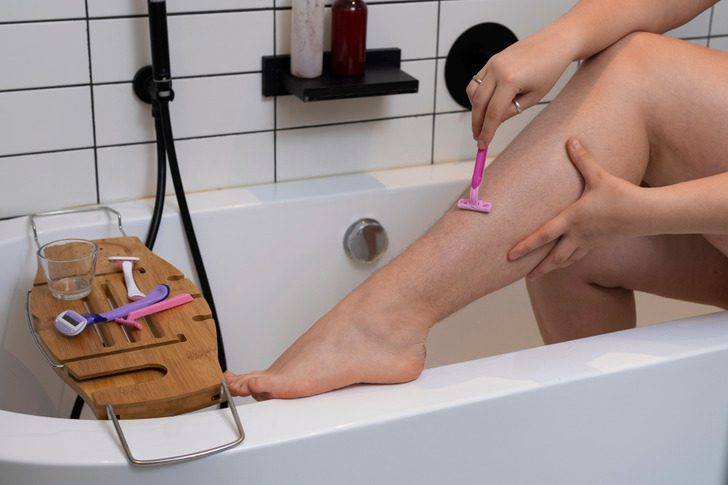 В душевой отеля установлен угловой пьедестал для бритья ног с держателем бритвы