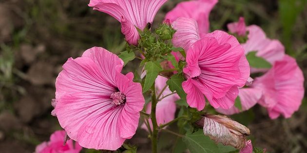 Лаватера разрастается большими, довольно длинными кустами. Это очень неприхотливый цветок, устойчивый и к заморозкам, и к засухе. А вот слишком влажную почву лаватера недолюбливает. В жару растение нужно поливать раз в неделю, а в прохладное время — ещё реже. Для лучшего цветения нужно срезать увядшие цветы.