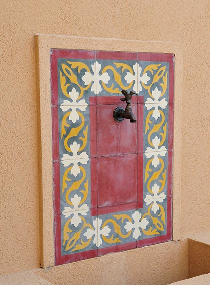 Умывальник на даче! Это вообще, шедевр просто! Хотя тут, даже не плитка, а просто рисунок на стене, но сама идея! Плитка была бы практичнее.
