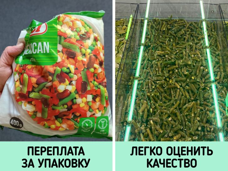 Вместо покупки фасованных смесей, в которые часто добавляют бесполезные соусы, лучше выбирать овощи на развес. Они обходятся гораздо дешевле, и качество таких продуктов можно оценить на глаз, в отличие от вариантов в непрозрачных пакетах.