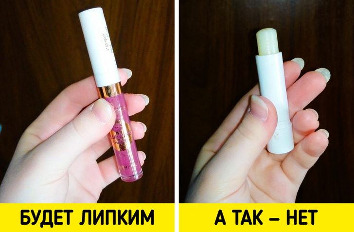 Многие из тех, кто любит блески для губ, сталкивались с проблемой липкости. Так получается, потому, что мы пользуемся им не совсем правильно. Для идеального эффекта стоит наносить сразу три средства: начинайте с бальзама для губ, затем нанесите нейтральную помаду, и только после этого наносите блеск для губ.