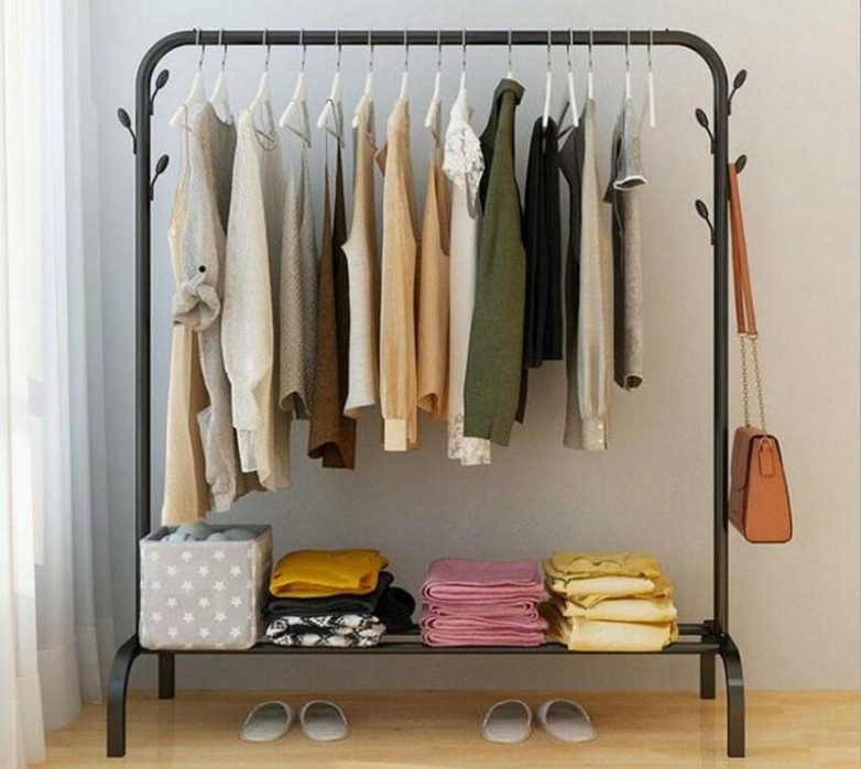 Открытые вешалки очень выручают, когда нужно срочно и дёшево организовать хранение в каком-нибудь временном жилище, например, на даче, общежитии или съемной квартире. Но, если вы думаете, что открытая вешалка превратит вашу спальню или прихожую в модную картинку, «визуально облегчит интерьер» и решит проблему с беспорядком, то спешим вас огорчить. Чтобы вешалка смотрелась красиво, придется развешивать вещи по цветам и в определённом порядке. Если этого не делать, такая открытая вешалка очень быстро привнесёт в вашу комнату ощущение беспорядка и визуальный шум. Еще один аргумент против открытой вешалки: одежда, которая будет долго висеть вне шкафа, со временем покроется пылью. На постановочных фото в интернет-магазинах такие вешалки выглядят невообразимо стильно и по-европейски, но в жизни одежда на них быстро запылится и принесёт в интерьер ощущение беспорядка.