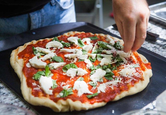 -На скорую руку легко приготовить пиццу. Для этого держите покупное тесто в морозилке. Достаньте заготовку, выложите на нее кусочки колбасы, мяса, овощей, сверху натрите сыр и отправьте в духовку минут на 10-15.