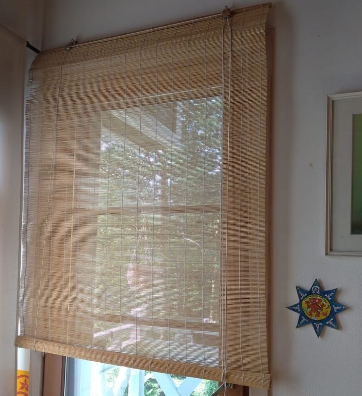 Бамбуковые жалюзи, которые сворачиваются в рулоны, кажутся неплохой заменой тканевым. Выглядят они интересно, а еще стоят дешевле деревянных аналогов, да и пыль на них не так заметна. Однако они частенько не работают должным образом.