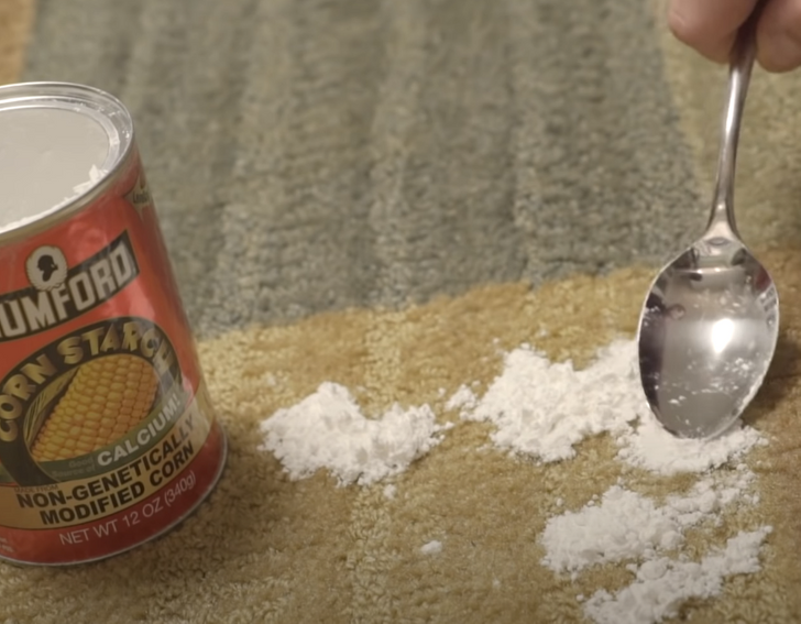 Уберите жирное пятно с ковра, посыпав его кукурузным крахмалом и оставив на 15-20 минут. Затем просто пропылесосьте