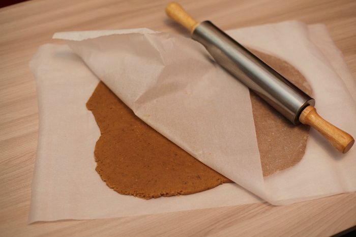 К счастью, из любой ситуации можно найти выход. Как вариант – смазать стол растительным маслом. Но лучше взять два листа плотной пищевой пленки или бумаги для выпечки, положить между ними тесто и раскатать его до нужной толщины и размера. В этом случае тесто не будет прилипать ни к скалке, ни к столу, а можно будет смело обойтись без муки.