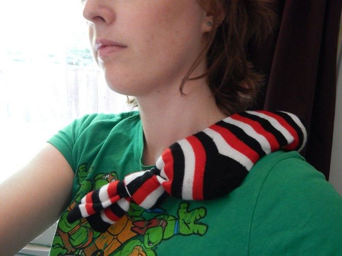 Необходимо прогревание? Засыпьте в носок рис и завяжите края. Отправляйте конструкцию в микроволновку на 30 секунд и наслаждайтесь приятным тёплым компрессом.