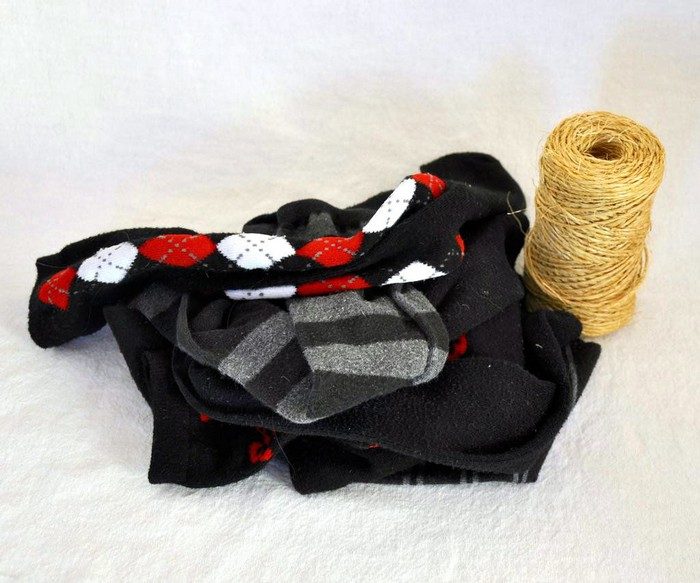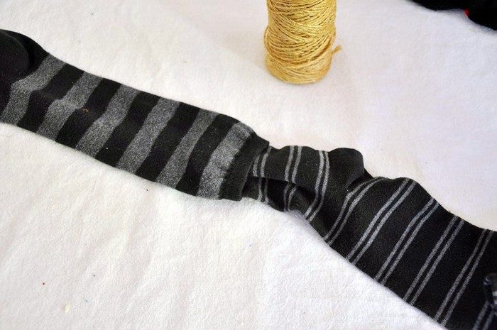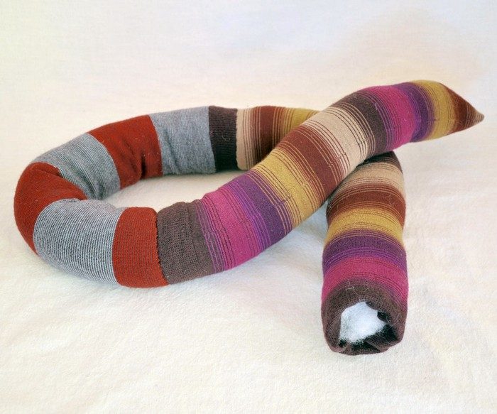 Из нескольких разных носков, набитых рисом или ватой и сшитых вместе, получится удобная подкладка под дверь. И никакие сквозняки будут не страшны.