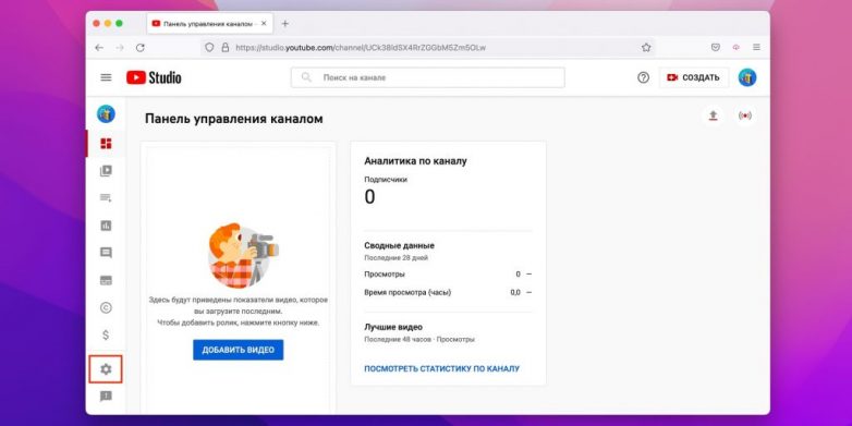 Откройте страницу творческой студии и перейдите в настройки, кликнув по значку шестерёнки.