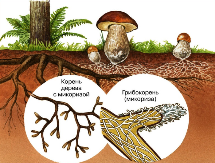 Грибница, развиваясь, оплетает собой корневую систему определенного дерева, проникая внутрь нее. Таким образом появляется грибокорень или микориза. Отсюда и название грибов этого типа – микоризные.