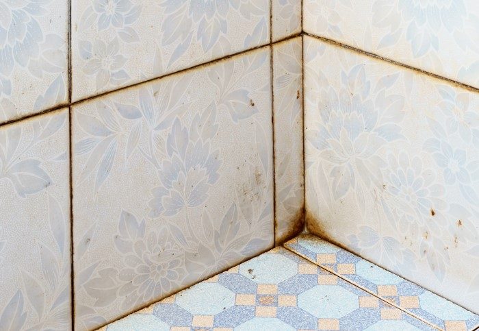 Если на швах между кафелем скопилась грязь, необходимо тщательно очистить и отбелить загрязненные участки. Черные точки — индикаторы грибковых инфекций. Обязательно протрите швы антисептиком, чтобы предотвратить распространение плесени. Например, гидрокарбонатом натрия.