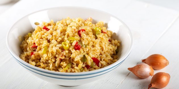 Клетчатки в приготовленном булгуре даже больше, чем в запаренных отрубях — 4,5 г на 100 г каши. При этом булгур, в отличие от отрубей, может стать прекрасной основой для полноценного блюда — например, плова, ризотто или сытного салата.