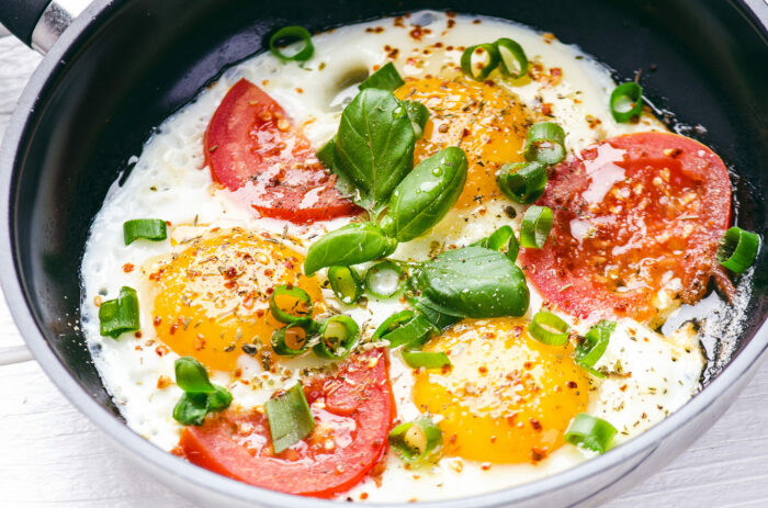 Еда должна быть не только сытной и вкусной, но еще и красивой. Касается, это в том числе и такой простой на первый взгляд штуковины, как яичница. Большинство людей просто жарит одно или несколько яиц. Хотя в яичницу можно добавлять самые разные ингредиенты включая колбасы и мясо. Однако, в рамках выполнения «программы минимум» у повара должны быть соль и перец, сливочное масло, зеленый лук.