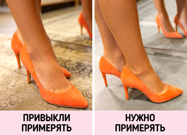 Во многих обувных магазинах возле зеркала постелен ковер. Часто при выборе обуви мы ходим исключительно по нему. Но симпатичный мягкий коврик может оказать медвежью услугу. Ворс создает ощущение, что подошва обуви мягкая или в ней есть дополнительная подкладка, которой на самом деле может и не быть. Чтобы проверить удобство и толщину подошвы, выйдите за пределы коврика и пройдитесь по торговому залу — так вы точно поймете, насколько они комфортные.