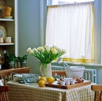 Еще один прекрасный вариант, который преобразит кухонные окна. Такие занавески невероятно просты в изготовлении и не требуют большого количества ткани.