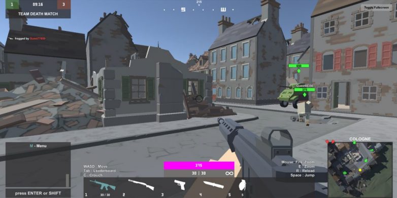 В браузерной игре предлагается много различного оружия и транспорта, всё это предстоит постепенно разблокировать. Изначально вы получаете в распоряжение базовый набор инвентаря. Для передвижения по карте можно использовать танки и вертолёты.