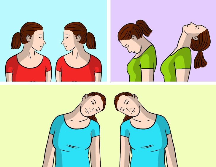 Медленно прогните голову вправо, стараясь достичь максимального растяжения. Не задерживаясь в крайней точке, вернитесь в исходное положение.