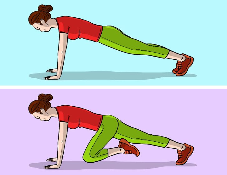Для поддержания себя в хорошей форме специалисты рекомендуют сбалансированное питание, а также больше времени уделять кардиотренировкам. Если на поход в бассейн или пробежку в парке времени не остается, отличной заменой станет упражнение «скалолаз». Оно эффективно сжигает калории и рекомендуется при похудении.