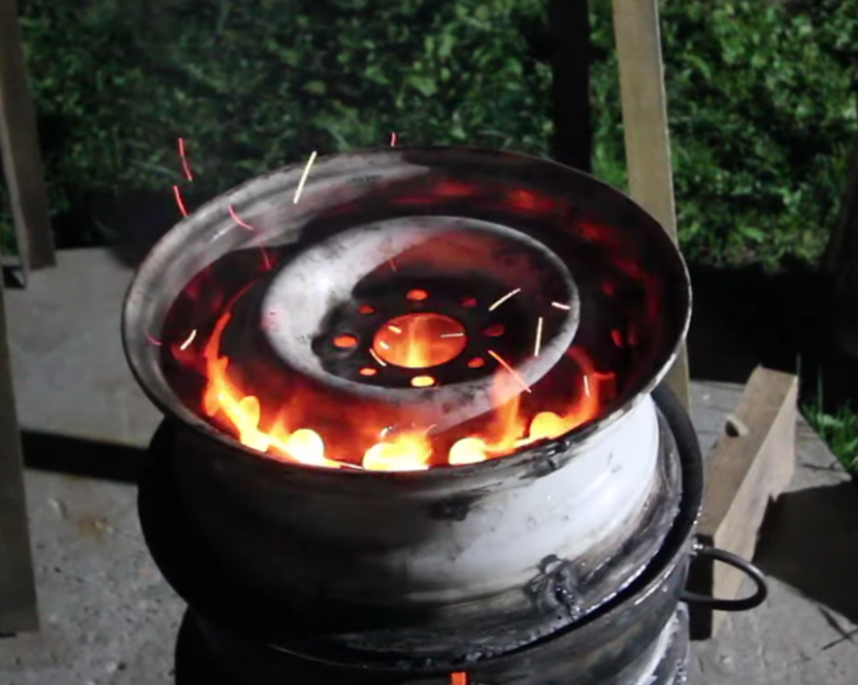 Самодельная печка под казан из старых автомобильных дисков