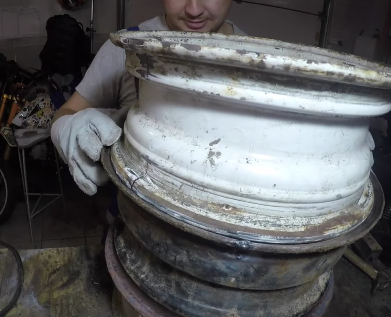 Берем три наших диска и полностью убираем с них все что не нужно, это доп грузы балансировки, нипель давления и тд.