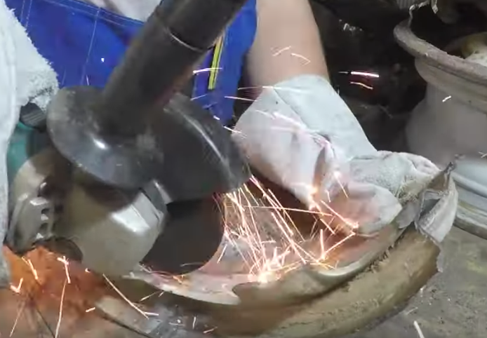 Следующих шаг нужно зачистить все края где будет проходить сварочный шов.