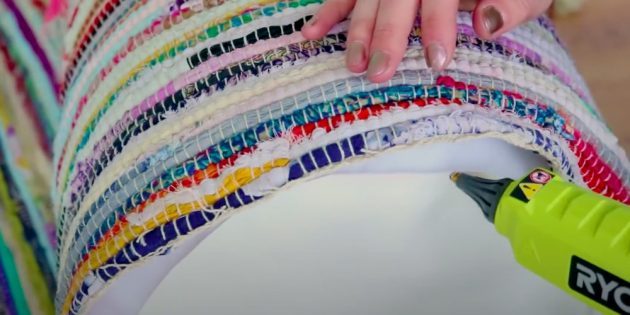 Аккуратно приклейте края чехла к флисовому низу пуфика.