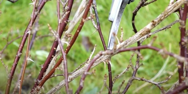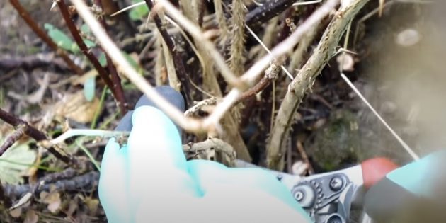 Затем удаляйте стебли, которые переплетаются с другими ветками или трутся о соседние, а также те, что растут по направлению к центру куста.