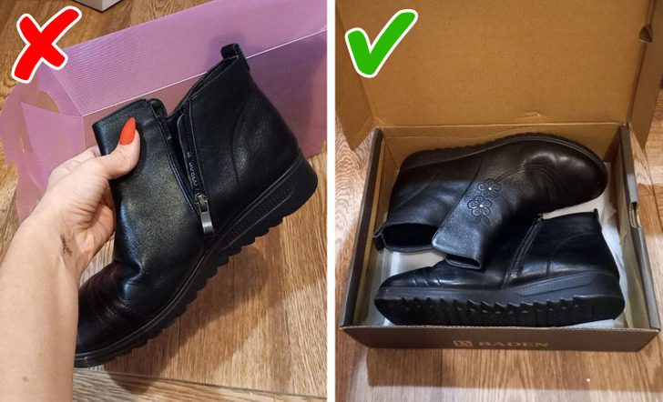 Чтобы сапоги прослужили не один сезон, важно помнить об их правильном хранении. В первую очередь следует выбрать длинную коробку, чтобы не пришлось сгибать голенище сапога, тем самым предупредив образование складок и трещин.
