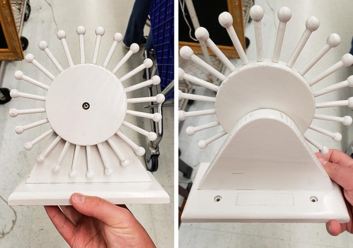 Ответ: «Выглядит как вращающийся держатель для галстука, крепящийся к стене».