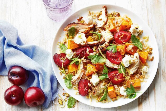Салат с куриным филе и сочными ароматными сливами – обязательный пункт в летнем меню. Такое блюдо отлично подойдёт для перекусов, особенно, если подавать его не привычным традиционным способом, а выложить на хрустящие тосты или пресные вафли.