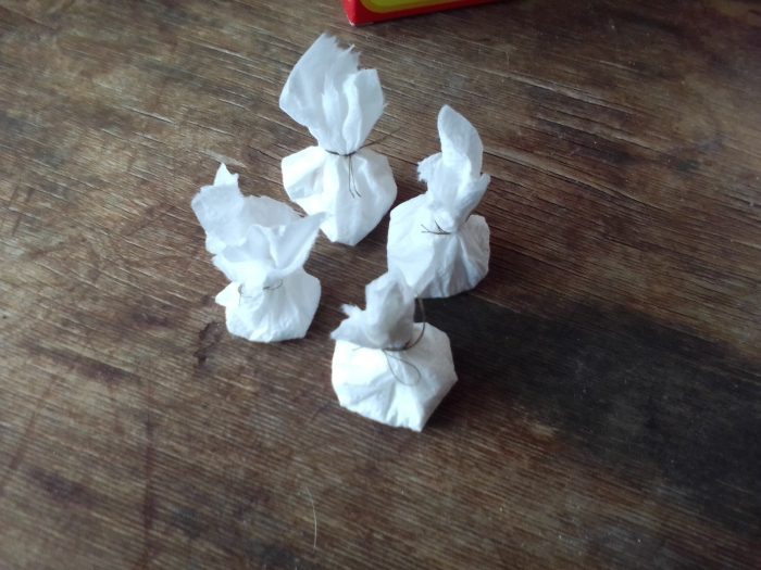 Что понадобится: столовая сода, нитки, туалетная бумага или бумажные салфетки