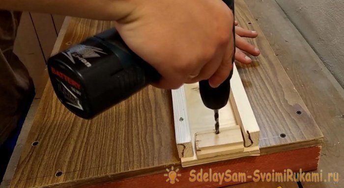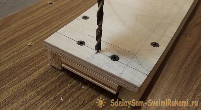 11. Сверлом на 10 мм выполняем глухие отверстия глубиной 10 мм.