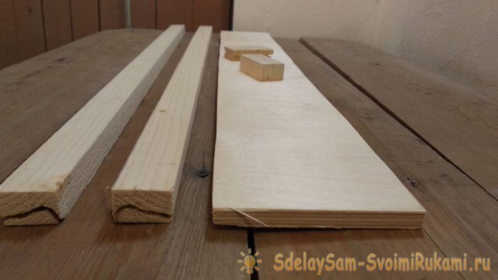 Лист ДВП или фанеры 400 х 700 мм;Рейки 30 х 50 и 20 х 30 мм;