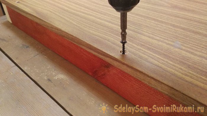 Выполняем три отверстия под саморезы с фасками, чтобы «спрятать» шляпки крепежа.