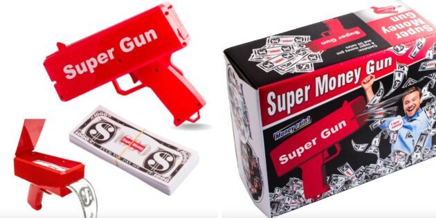Шуточный сувенир, который позволит получателю подарка почувствовать себя настоящим гангста и посорить деньгами. Пачка банкнот из комплекта закладывается в специальный отсек пластикового пистолета. При нажатии на курок купюры эффектно разлетаются по комнате.